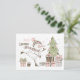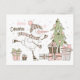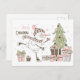 Carte Postale Snowman Ski avec Arbre de Noël et cadeaux