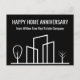 Cette carte postale commémorative de Happy Home est tendance, faite sur mesure avec le nom de votre agence immobilière. Ces cartes noir et blanc présentent un simple dessin au trait d'un quartier avec un arbre de chaque côté. Envoyez-les à vos anciens clients pour leur rappeler de recommander à leurs amis et à leur famille qui cherchent à acheter ou à vendre leur maison. Le marketing pour une entreprise immobilière signifie rester en contact avec les clients réguliers et leur demander des recommandations.