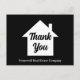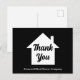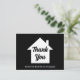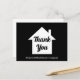 Cartes de remerciement pour agence immobilière chic en noir et blanc moderne. Personnalisez avec votre agence immobilière sous la maison simple pour un client acheteur de maison ou un agent immobilier professionnel.