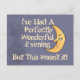 "J'ai eu une soirée merveilleuse, mais ce n'était pas ça !" Drôle dicton décoré d'une misérable apparence mi-lune.