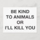 Carte Postale Sois gentil avec les animaux ou je te tuerai