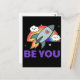 Carte Postale Sois toi. Nuage de fusée arc-en-ciel avec coeur. A