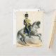 Gravure vintage en couleurs des soldats français du Second Empire français au milieu du 19ème siècle. Un officier d'artillerie à cheval.