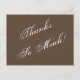 Cette conception de carte postale de remerciement sophistiquée et élégante comporte le message "Merci beaucoup !" sur le devant, ainsi qu'un message personnalisable au verso. Elle pourrait être utilisée pour remercier quelqu'un qui a fait un acte spécial.