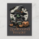Lecture de sorcière verte avec chauve-souris et jack-o-lanterns et le texte "Spellbound Reader".