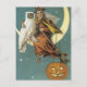 Carte Postale Sorcière d'Halloween à l'ancienne et la lune