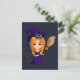 Carte Postale Sorcière mignonne en Casquette mauve et son chat H