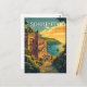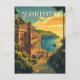 Découvrez la beauté de Sorrente, Italie avec cette carte postale vectorielle Art déco époustouflante. Admirez l'illustration détaillée du cadre et de l'architecture pittoresques de la ville, dans des couleurs pastel vives et dans un style coloré.