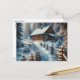 Carte postale de Noël. Le texte peut être personnalisé à l'intérieur. Une jolie aquarelle représentant un cabine en rondins dans les bois neigeux.
