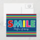 Sourire coloré, c'est un design de texte gratuit avec décoration de rayures sur fond bleu
