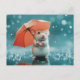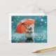 Carte Postale Souris avec parapluie dans la pluie : belle scène