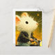 Carte Postale Souris blanche adorable chevauchant une moto en no