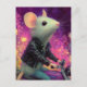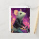 Carte Postale Souris blanche adorable chevauchant une motocyclet