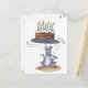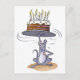 Une mignonne petite souris tient un gâteau d'anniversaire en haut.