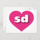 Cette carte est dotée d'un coeur rose chaud et vibrant contenant les lettres coques inférieures sd, audacieuses, blanches et arrondies, une abréviation ludique pour le Dakota du Sud, l'état de la montagne rushmore. La carte est vide à l'intérieur, en attendant vos sentiments manuscrits ou texte customisé.