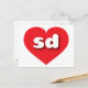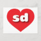 Cette carte postale est dotée d'un coeur rouge vif contenant des lettres coques inférieures sd, pleines de blanc et arrondies, une abréviation amusante pour le Dakota du Sud, l'état du Mont Rushmore.