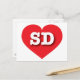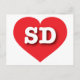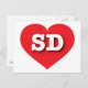 Cette carte postale est dotée d'un coeur rouge vif contenant les lettres coques supérieures et audacieuses SD, l'abréviation officielle du Dakota du Sud, l'état du Mont Rushmore. Le revers de la carte postale est vide, en attendant votre texte personnalisé ou vos sentiments manuscrits.