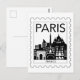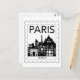 Timbre minimaliste parisien avec tour Eiffel, Arc de Triomphe et emblématiques monuments français. Un graphisme design en noir et blanc pour les amateurs de voyage, de souvenirs parisiens et de murailles modernes.