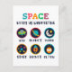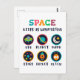Playful space themed artwork made for curious kids and young students. Cute symbols like UFO, planet, moon, stars, rocket and alien help children explore space science and basic astronomy in a fun and friendly way.