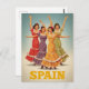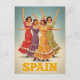 Capture the passion and color of Spain with this stunning, vintage-style travel postcard. The vibrant illustration features four beautiful Flamenco dancers in classic, brightly colored polka-dot dresses (traje de flamenca), with their arms raised in an energetic pose. This design perfectly evokes the spirit of Andalusia and the traditional art of Spanish dance. The bold, retro lettering declares "SPAIN". This card is ideal for fans of dance, retro travel posters, or anyone sending a spirited greeting from their Spanish holiday.