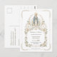 Mark your special date with this enchanting "Reserva la Fecha" postcard, featuring a vintage depiction of the Virgin Mary adorned with a crown of light and framed by a lush wreath of roses and greenery. This design is a beautiful fusion of religious devotion and romantic celebration, ideal for couples who wish to incorporate their faith into their wedding stationery. The intricate floral details and subtle religious iconography, such as the rosary and cross, lend an air of timeless grace and spiritual significance. It's a tender way to ask your guests to "Save the Date" as you embark on your married life together, under the watchful and loving gaze of the Virgin Mary. This announcement serves as a beautiful testament to your love and commitment, setting a sacred and elegant tone for your wedding festivities. Let this design be the first beautiful step in your journey towards a blessed marriage.