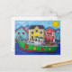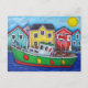 Scène colorée d'un bateau de pêche qui transporte beaucoup de homard dans une belle ville des Maritimes par l'artiste populaire Lisa Lorenz maintenant sur une carte postale.