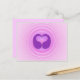 Ce design présente une œuvre d'art en forme de cœur rose et violet sur un fond en spirale à l'avant et une couleur assortie complémentaire à l'arrière. Le dos vierge est prêt pour votre note manuscrite.