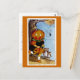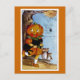 Carte de voeux Halloween vintage illustration d'une fille Citrouille effrayée par les fantômes et une araignée.
