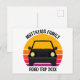 Cool custom road trip postcards for spring break or summer vacation with your family or friends. Personalize with your last name or group above the retro sunset and car silhouette. Perfect keepsake for a trip to a cottage or across the country. Drive off into the sunset.