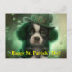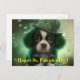 Une carte postale de St. Patricks' Day avec un mignon chiot. Le devant montre un chiot et dit : Joyeuse Saint Patrick.
