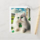 Carte Postale St. Patricks Day Chat Fluffy Blanc Chat Yeux verts