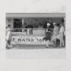 Cette image est l'agrandissement d'une partie de la photographie vintage originale de 1928, axée sur l'activité au comptoir avant. Le panneau indique "ANDY'S SELT WATER TAFFY VOIR IT FADE".