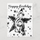 Note de clef noire entourée d'étoiles noires et blanches.