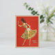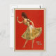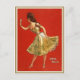 Voici la star du Vaudeville Anna Held, sur un fond rouge gras, et tenant une petite carte qui dit, "Viens jouer avec moi."
