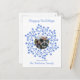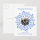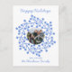 Ajoutez votre propre photo à ce design moderne et moderne scandinave de fêtes de couronne de fleurs bleu et blanc. Ça fait une belle famille. Modifiez le message d'accueil et le nom pour personnaliser. Crédit photo : Photographie © Storytree Studios, Stanford, CA