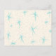 Ce motif de carte postale Space Age Turquoise Starbursts présente des étoiles bleues sur un arrière - plan crémeux avec des taches dorées. Inspiré d'un classique motif de plats modernes du milieu du siècle, ce design dégage une atmosphère vintage authentique. La bonté kitschy rétro vous fera sentir comme si vous étiez tombé sur un trésor du marché aux puces. Ce motif sera également à la maison dans un appartement de New York City penthouse ou une maison atomique Palm Springs. Laissez ce motif vintage minimaliste vous inspirer !