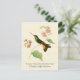 Carte postale avec une illustration vintage de l'histoire naturelle par Antoine-Germain Bevalet, c.) Un colibri vert avec un patch à gorge violette et des plumes de queue dorée perche sur un plante de wigandia tropical avec des fleurs roses, sur un arrière - plan de texture parchemin jaune clair. numériquement nettoyé et amélioré tout en conservant ses caractéristiques vintages. Caractéristiques communes et scientifiques dans les polices décoratives. Correspondance des timbres-poste américains disponibles.