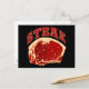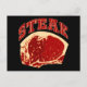 Cuisine, cuisine rétro. Ces t-shirts et autres objets sont imprimés avec une image de viande avec le mot steak en gros caractères.