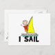 Un garçon à silhouette sur un voilier et le texte qui dit "I Sail", parfait pour quiconque aime les figurines et la voile!