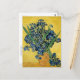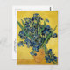 Une carte postale d'art avec le tableau post-impressionniste intitulé Still life with Irises (1890), de l'artiste néerlandais Vincent Van Gogh (1853-1890). Une vie morte avec un bouquet d'iris bleu-violet dans un bocal d'argile contre un arrière - plan doré.