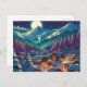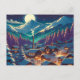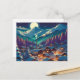 Carte Postale Style Anime Village d'hiver Snowy Night Scène