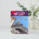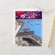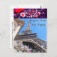 Bonjour. Envoyez cette carte postale Tour Eiffel pour saluer votre famille et vos amis du célèbre boulevard Las Vegas au Nevada, USA. Photo diurne d'un point de repère de casino le long de la bande avec des icônes colorées de jeu au sommet.