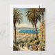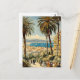 Publicité européenne Vintage spéciale - Plage, village, personnes, palmiers, mer bleue et ciel