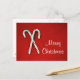 Sucres de canne de vacances rouges, verts et blancs photographiés sur un arrière - plan rouge festif. Texte blanc "Joyeux Noël" placé à côté des sucres de canne. Le texte peut être modifié ou supprimé selon vos besoins.