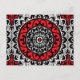 Southwestern / Aztec inspiré batik design carte postale dans un cadran solaire / mandala motif - tomate riche rouge, noir et blanc, accentué avec gris argenté / gris