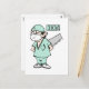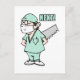 Un dessin d'un chirurgien tenant une grande main a vu derrière son dos en criant "SUIVANT !"