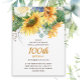Beau tournesol jaune et feuilles verts 100e anniversaire invitation pour les femmes. Vous pouvez customiser le texte sur cette carte pour une fête d'anniversaire quel que soit l'âge que vous fêtez.