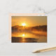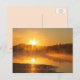 Photo d'un lac avec brouillard ou brouillard au lever du soleil, affichée sur une carte postale.