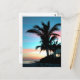 Le coucher de soleil bahama coloré tombe sur un palmier et une maison de plage.