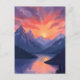 Carte Postale Sunset Mountain Range | Paysage du lac Watercolor